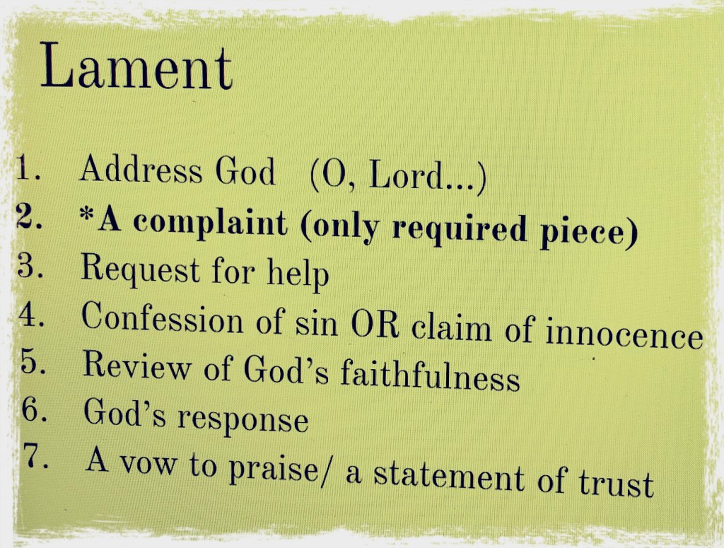 When we came to the exercise of writing our own lament, the turmoil of my heart flooded onto paper. I felt a deep sense of validation by this genre that had its own unique purpose and parameters.