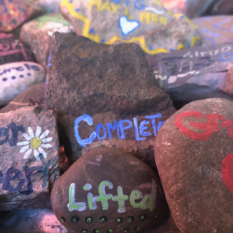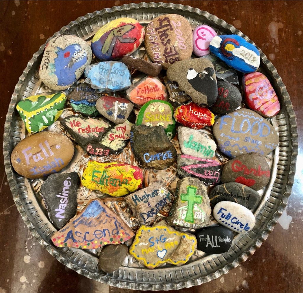 Lifted, belonging, and focus were all placed in the medley of rocks that tell the stories of God’s faithfulness over 22 years of Thanks-giving together.  A few stray rocks have gotten in the mix.  No one is sure who painted them, or when.